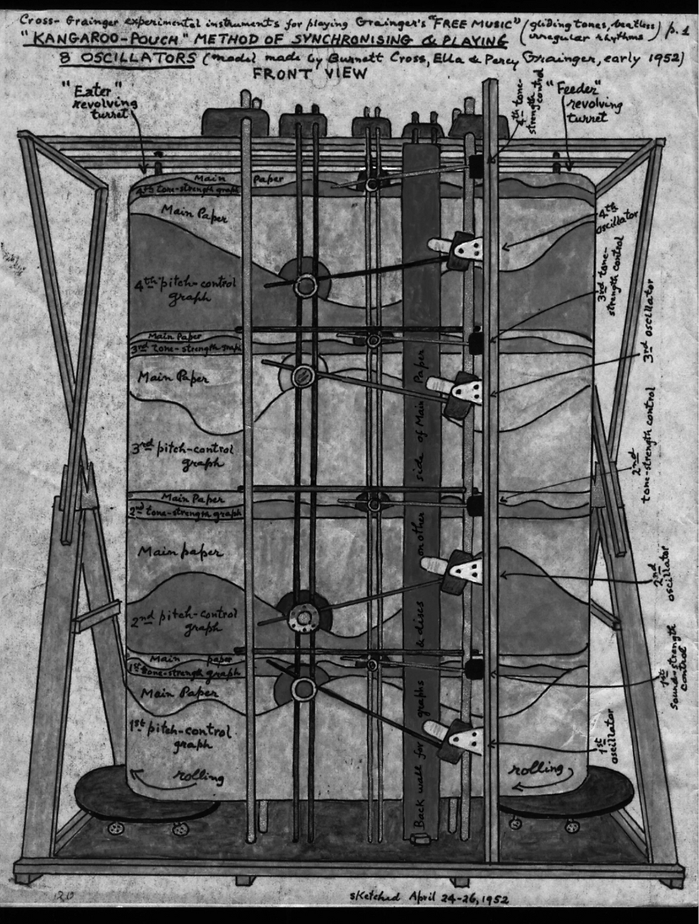 Graingers experimented with Thermins and changed the speed of recorded sounds on phonograph disks to make Free Music Machine in 1948. Grainers experiments with random music composition predated those of John Cage by 30 years.